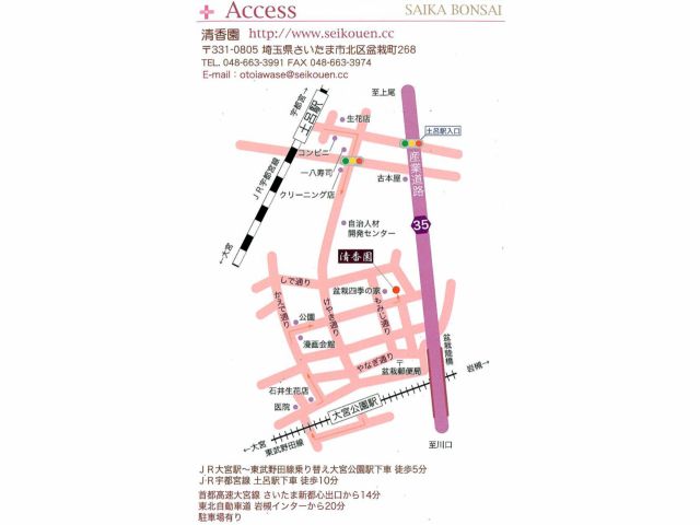 | 体験場所 | 〒331-0805 埼玉県さいたま市北区盆栽町268 盆栽 清香園盆栽町本店 |