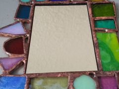 色んな形・色のガラスを好きに選べます。悩みすぎて時間かかっちゃいましたが、テープつけをさっさとやって挽回。その後、ハンダ付け等やって所要時間全部で約一時間半。使うガラス選ぶのに時間かからなければ一時間程度で終わるかと。