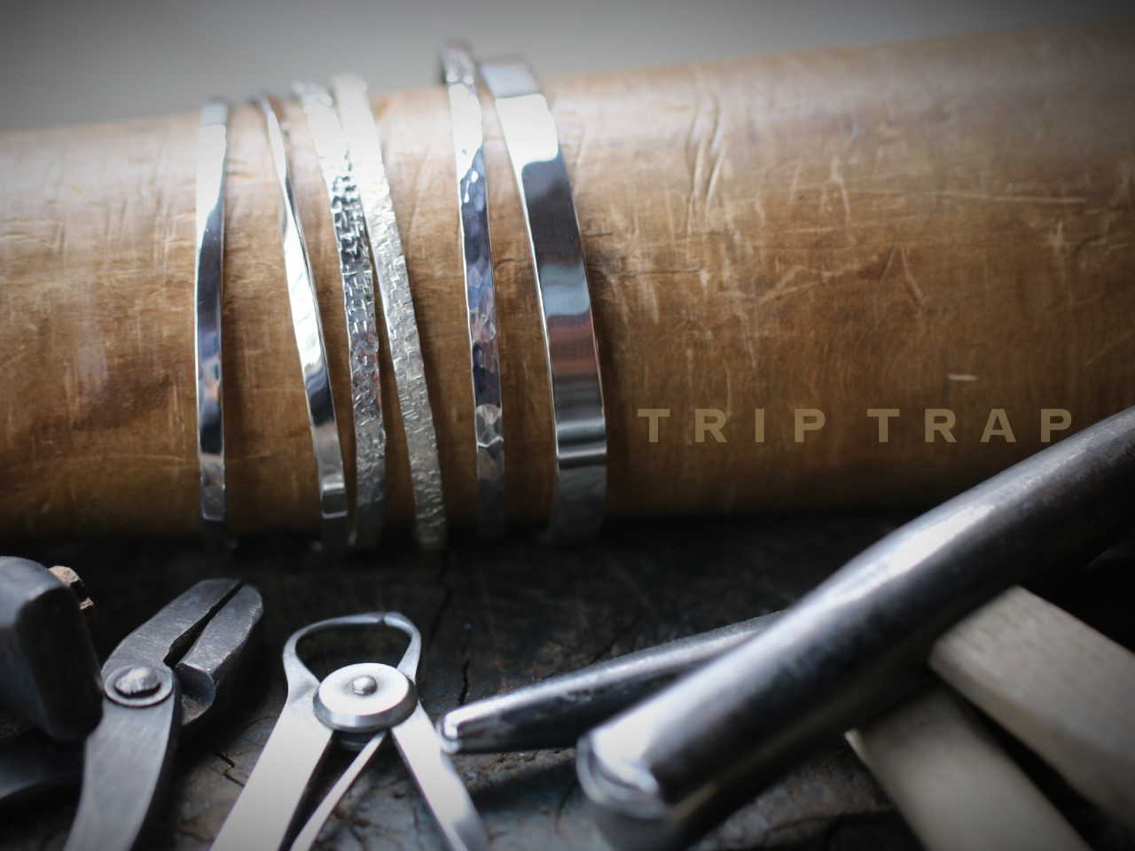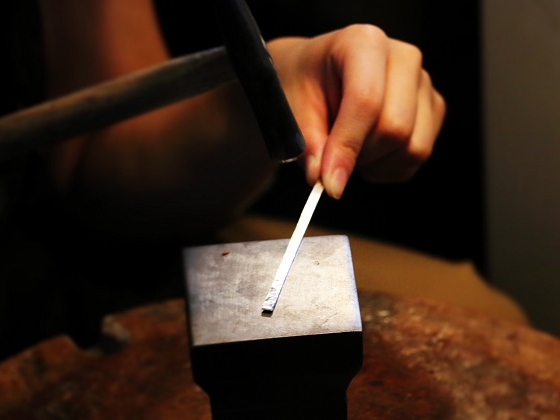 当店では伝統技法でもある鍛金という手法でバングルを作れます。