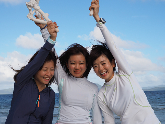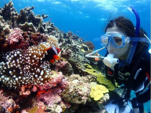 水面から差し込む日差し、聞こえる音、ユラユラ泳ぐ魚たち、潜ってみないとわからない神秘的な世界に感動。思わず笑顔がこぼれます♪