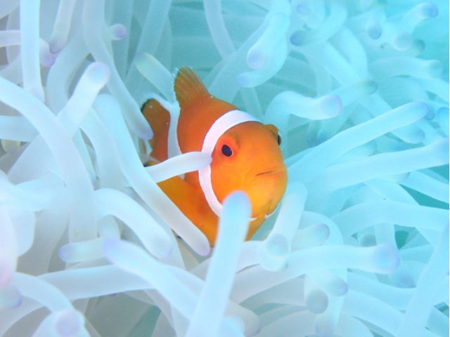水面から差し込む日差し、聞こえる音、ユラユラ泳ぐ魚たち、潜ってみないとわからない神秘的な世界に感動。思わず笑顔がこぼれます♪