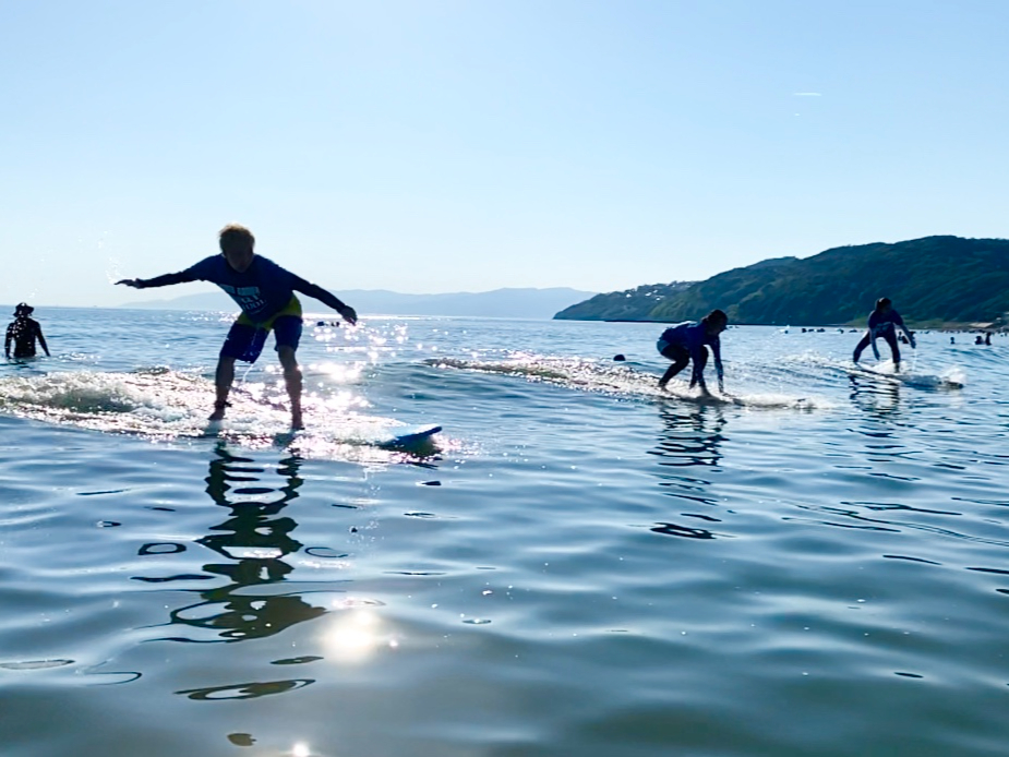 ファミリーでお越しいただいてもお子様にはごく浅い場所で遊びながらサーフ!
