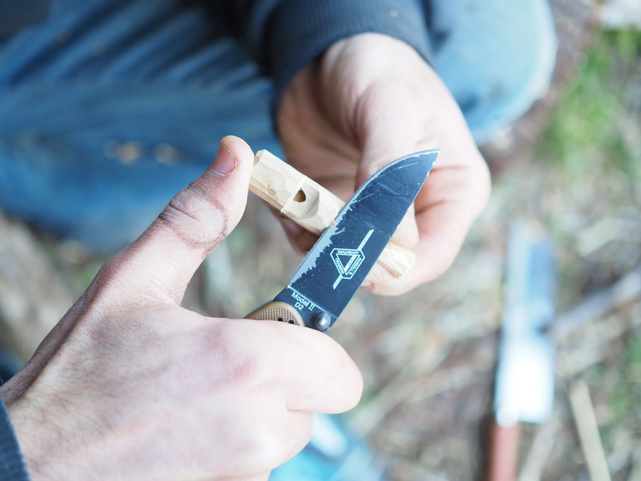 野外の木工体験【英語でブッシュクラフト】木の枝で作るオリジナルの笛。森に囲まれ自然豊かな工房でイスラエル人作家が指導!