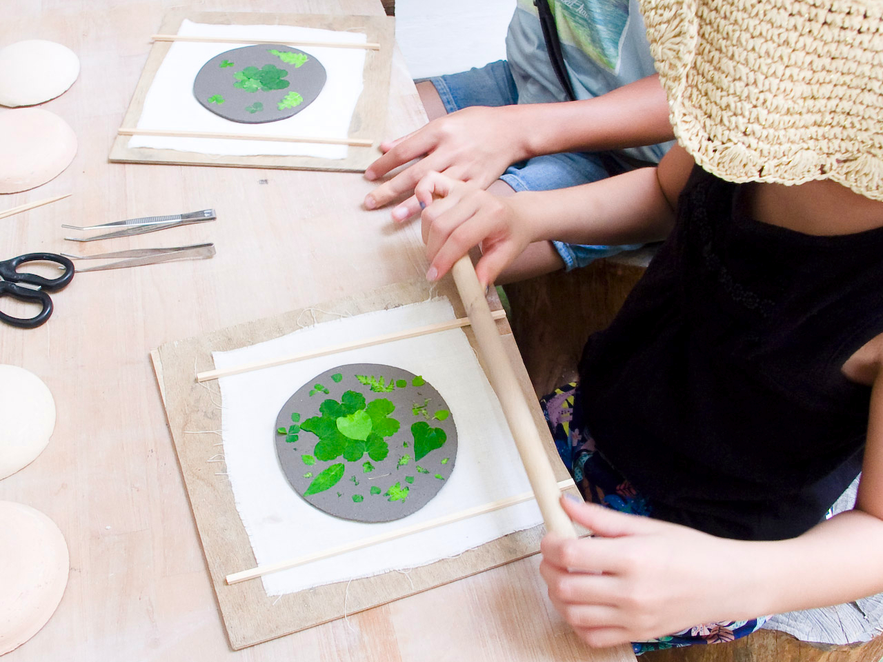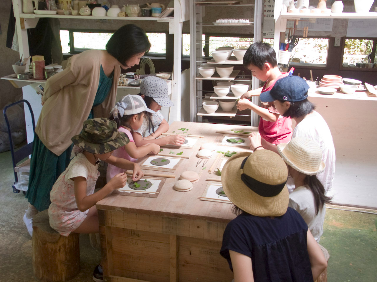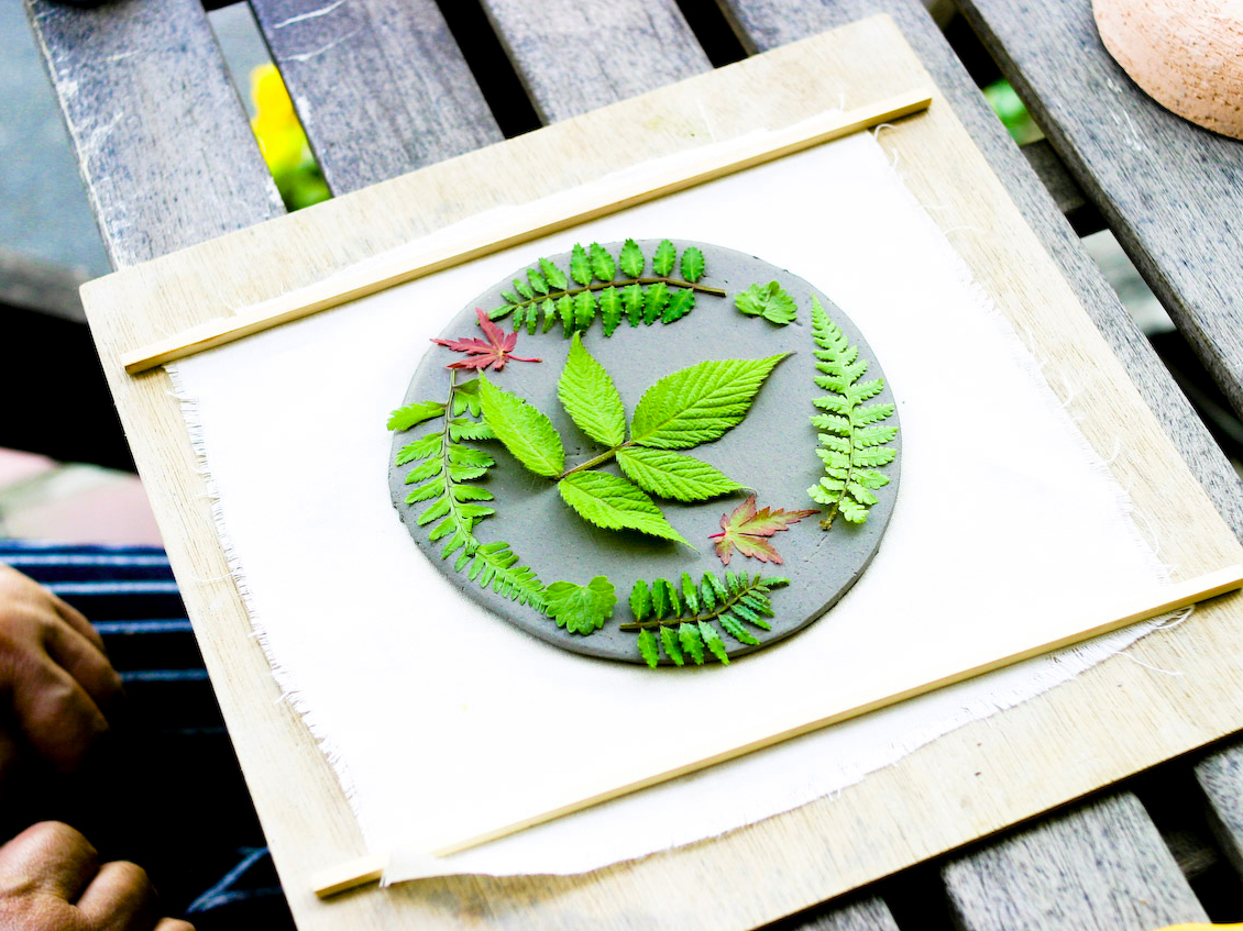【陶芸体験・葉っぱのお皿づくり】自分で摘み取った葉っぱを模様に!かわいい小皿づくり♪<ファミリー・友達同士におすすめ!> ▽里山×陶芸体験!自然豊かな里山の工房で、葉っぱを模様にかわいい小皿づくり♪