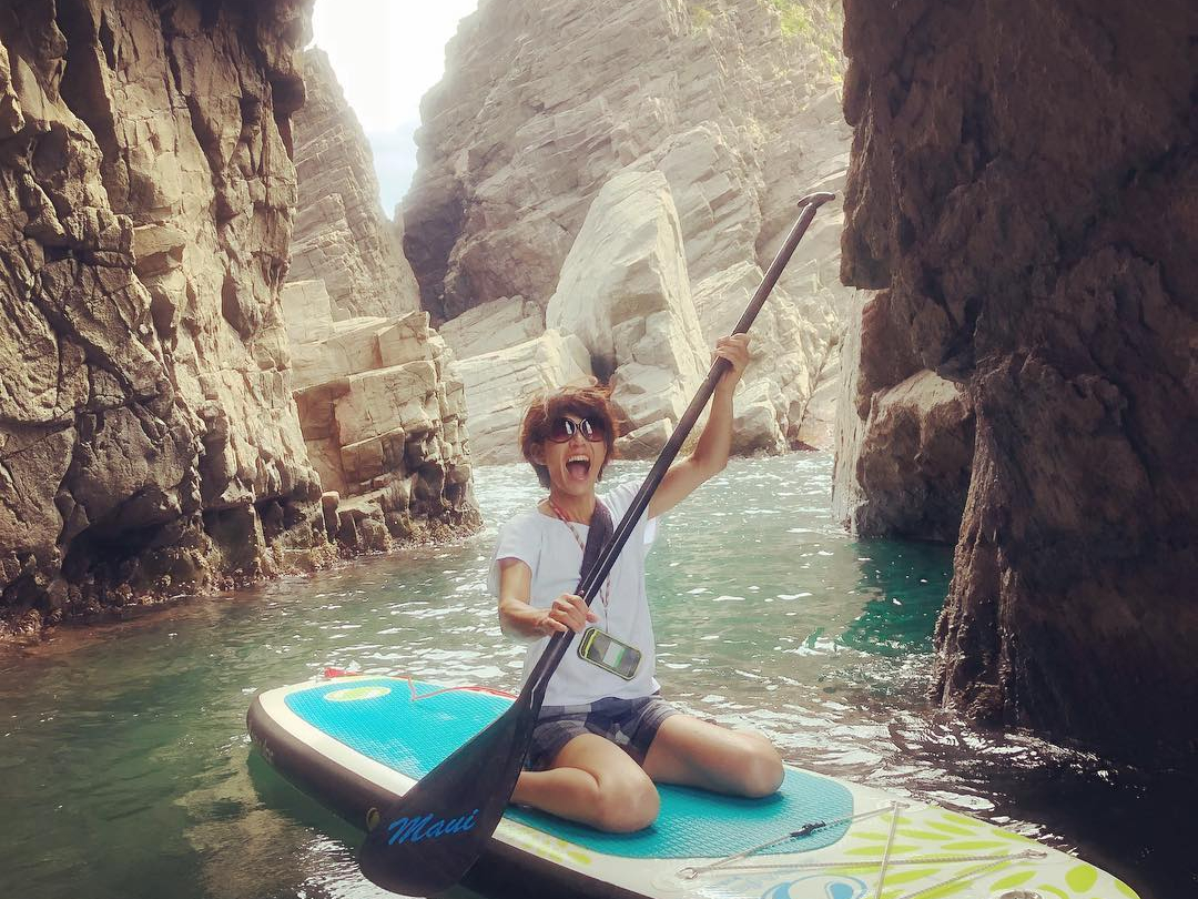 ビーチの岩場には映えスポットもあり、写真も撮っていただきました。帰りは楽だよーと言われて立ち漕ぎしてたら女芸人並みに派手に落ちました。腕の筋力ないし、ボードに上がることはあきらめてたらちゃんと引き上げてくださいました。感謝です。