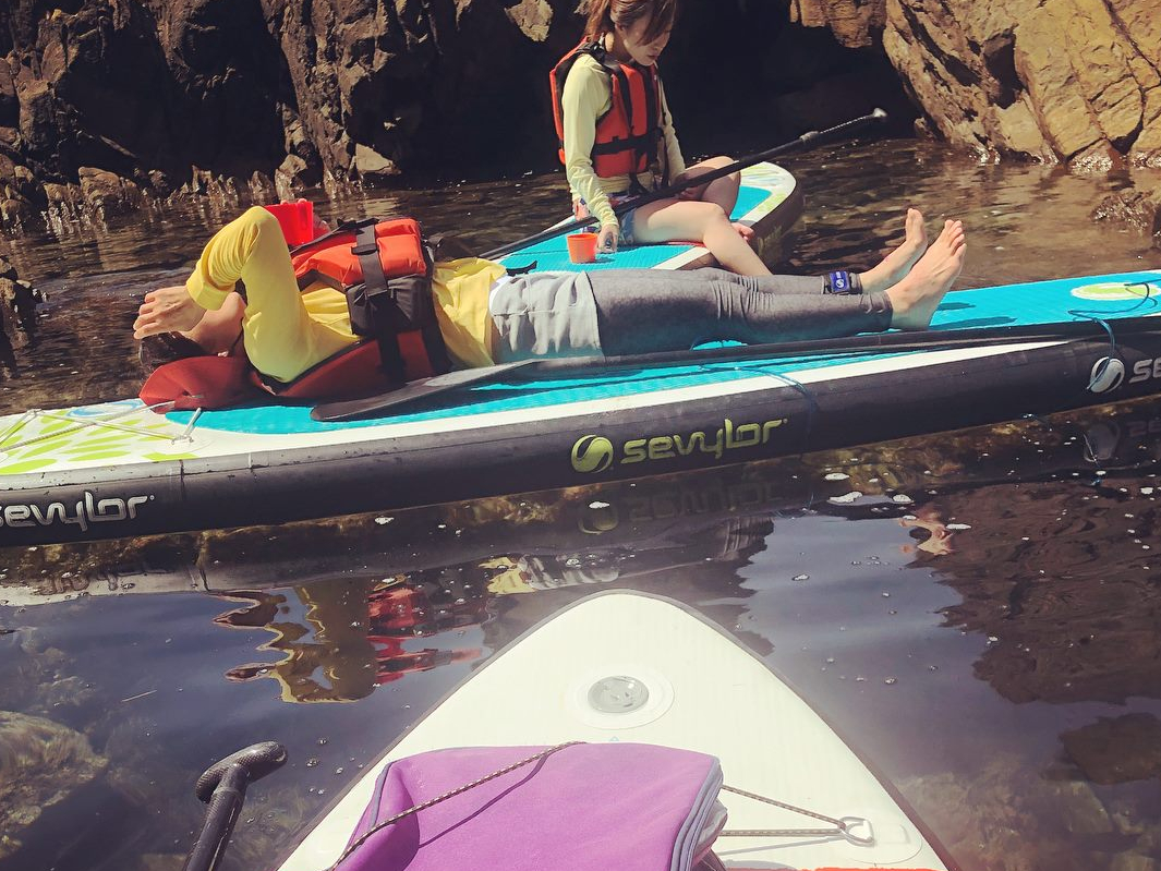 そんなことしてたら目標の岩場から遠く流されてしまい、インストラクターに追いつくまで必死に漕ぎ漕ぎ!それも楽しいーー。