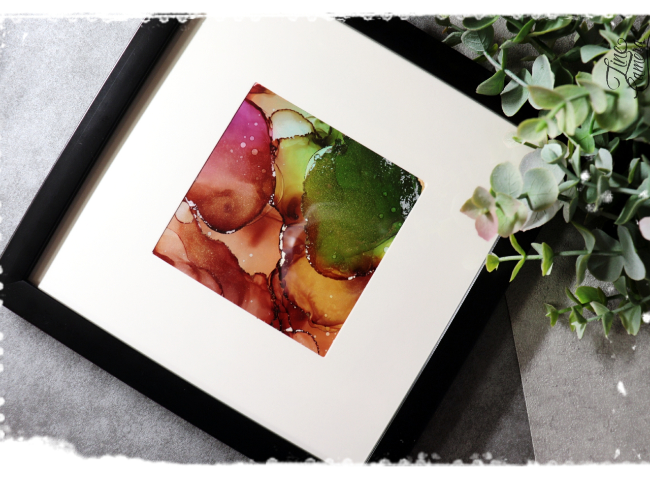 最近のアルコールインクアートではアルコールインクを垂らして書くことが流行っています。インテリアグッズ・プレゼントとしておすすめです。