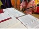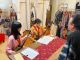 *お好きな琉装を選んで、瑞慶山師匠の三線の手解きを受けられて、