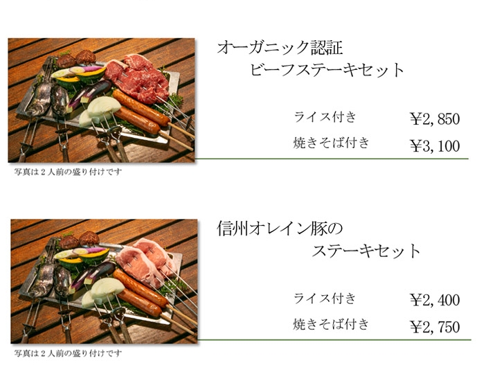 【手ぶらでBBQプラン♪旬の新鮮な野菜付き!(信州オレイン豚ステーキセット)】のプラン詳細