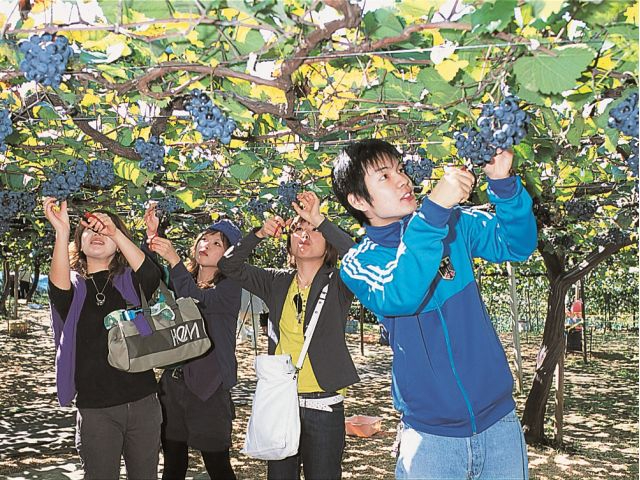 新鮮なぶどうを畑の中で40分間、ご自分でもぎ取り食べ放題です。