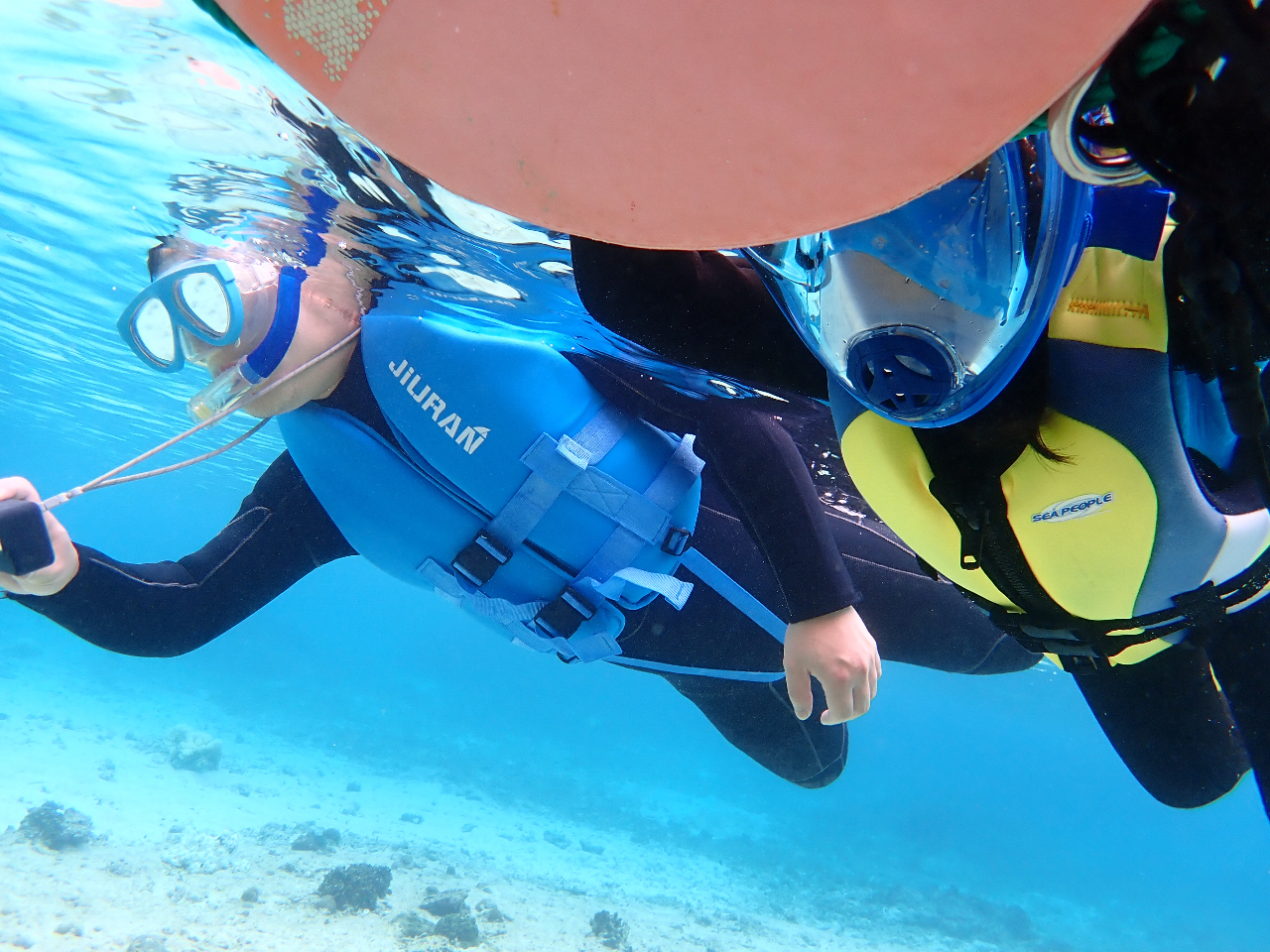 集合 → 免責同意書の記載 → 器材、ポイント等の説明 → いざ海へdive(50〜60分程度の遊泳) → 簡易シャワー・着替え → 解散→後日Google Driveで撮影データをプレゼント♪(繁忙期は2営業日程度お時間頂戴します)
