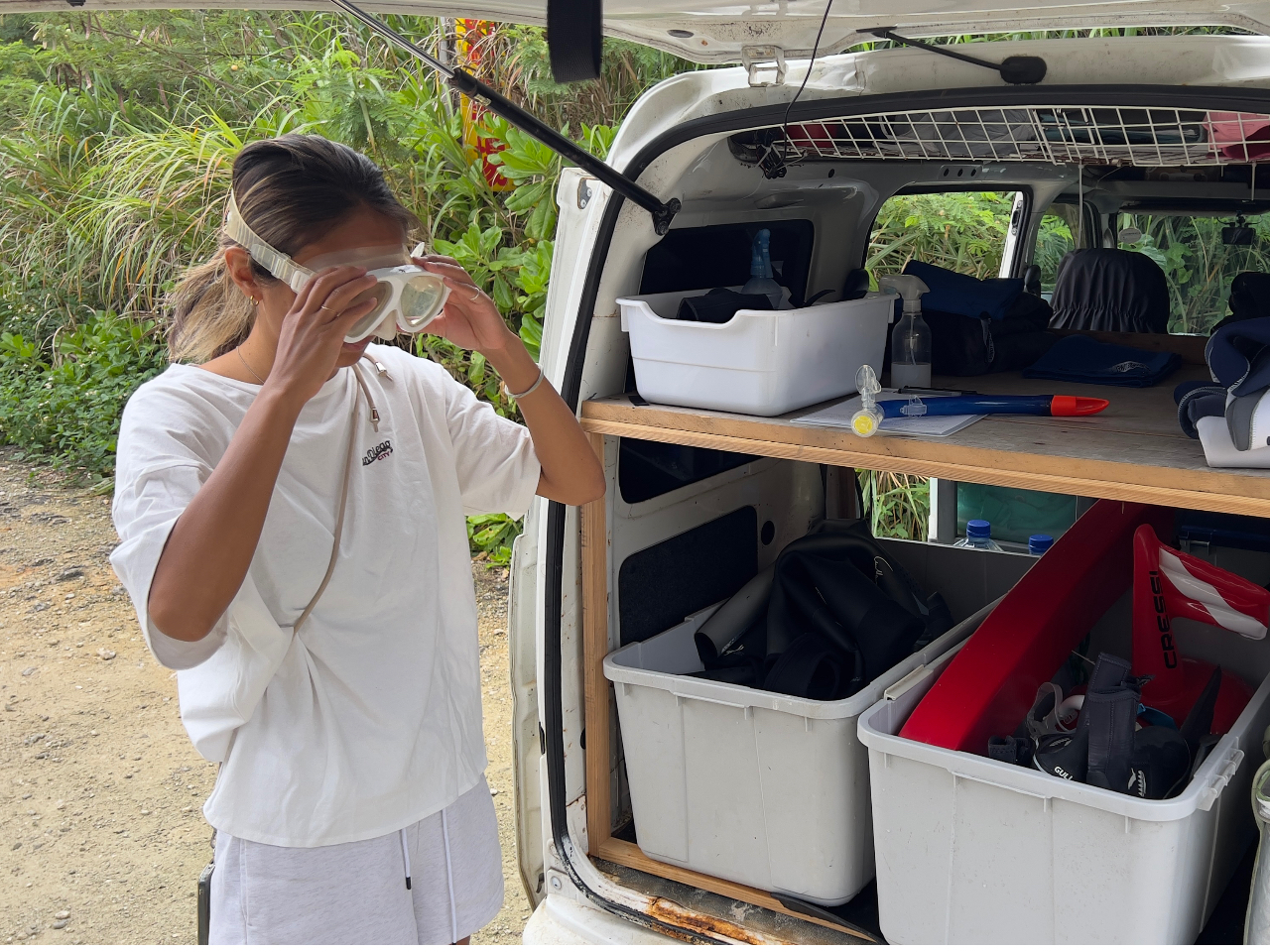 集合 → 免責同意書の記載 → 器材、ポイント、スキンダイビング方法等の説明 → いざ海へdive(50~60分程度の練習とスキンダイビング) → 簡易シャワー・着替え → 解散→後日Google Driveで撮影データも無料プレゼント♪(繁忙期は2営業日程度お時間頂戴します)