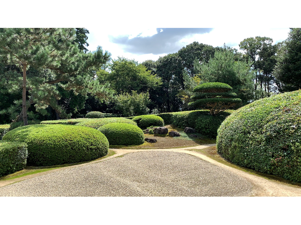 石州設計の枯山水と借景庭園は国名勝・国史跡と指定され、大和平野を一望できます。