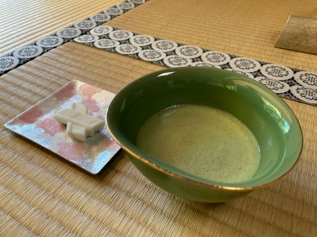 お抹茶が頂けるのは、一般的な拝観では入ることのできない「新書院」での1組様限定プライベートなおもてなしです。
