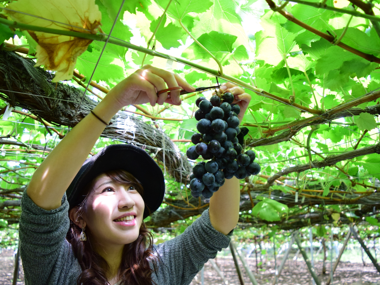 人気のマスカットベリーA又はフレッシュな甲州ぶどうを、畑で45分間の食べ放題コース
