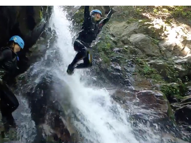 川の中をのんびり歩いたり、川に飛び込んだり、10mの岩壁をロープ1本で降りたりなど、スリル満点のドキドキでワクワクがみんなを待ってます。