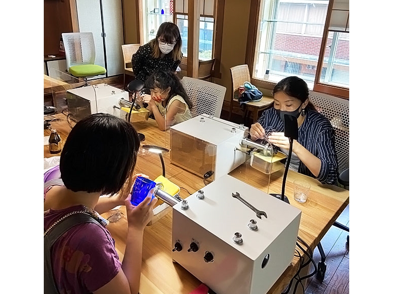 ガラスを削るのでケガをするんじゃないかと思いましたが、お話を伺うとケガをすることは滅多にない仕組みで、安心な体験でした。