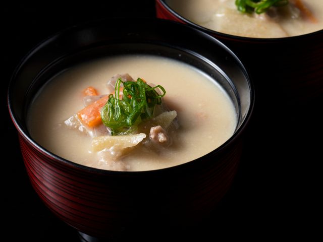 京都・伏見の「招徳酒造」純米のごほうび(酒粕)を使用した粕汁も絶品です。