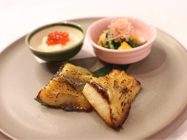 ・シマアジの西京焼きと旬の小鉢2種(+200)