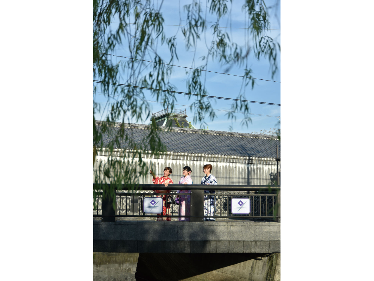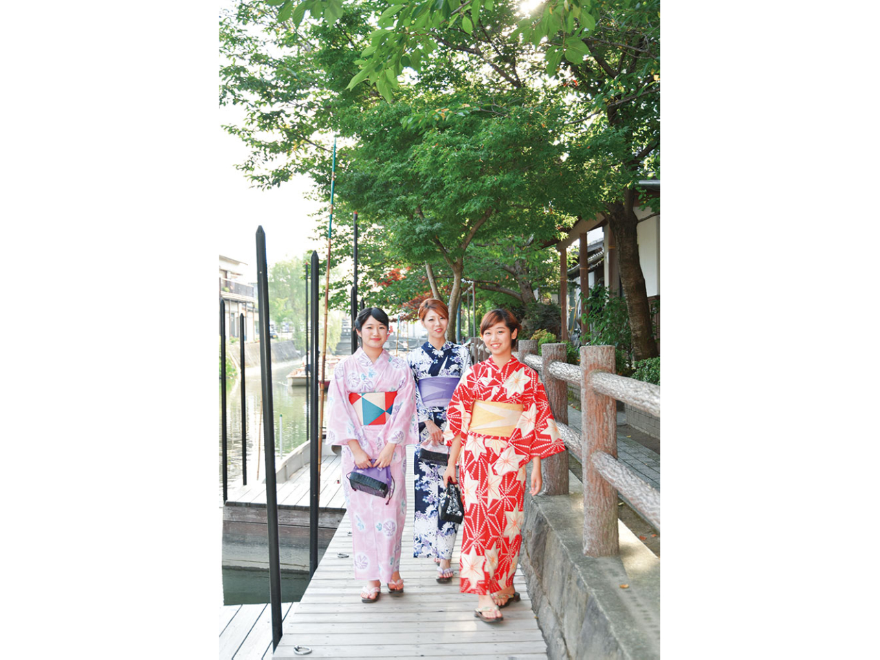 しっとりとした町並みや川下りをきもの姿で散策できます。