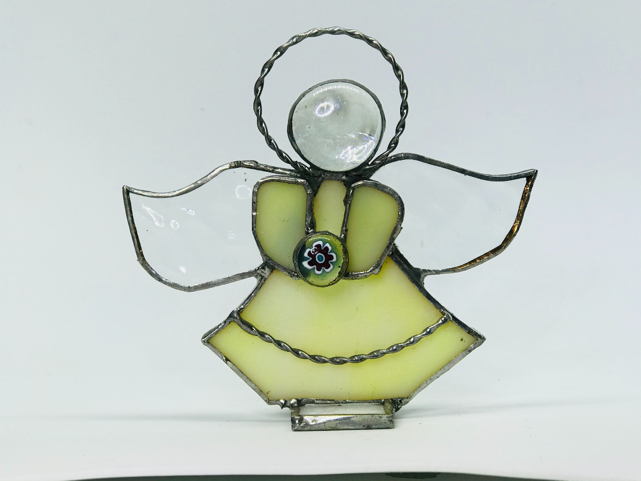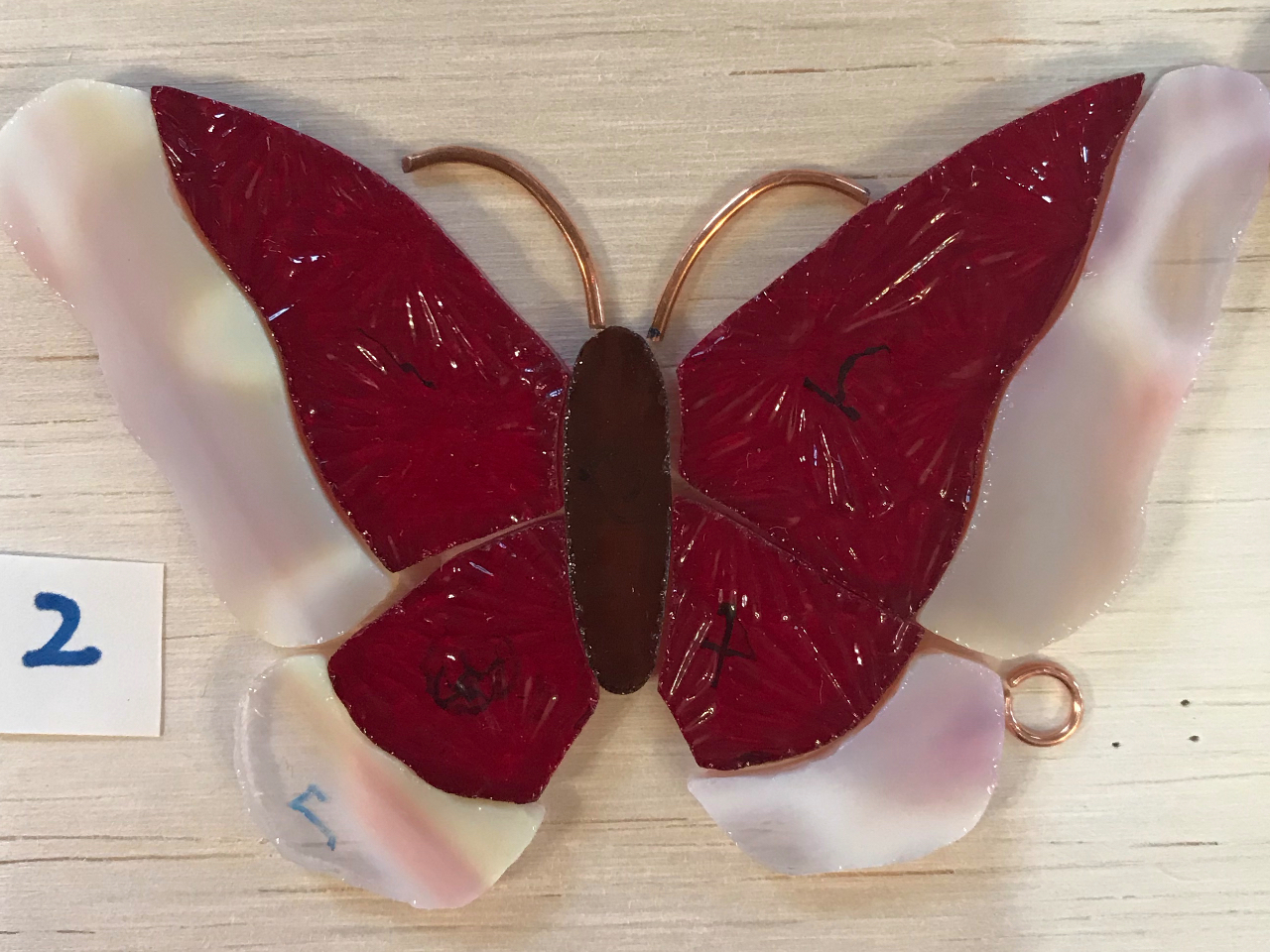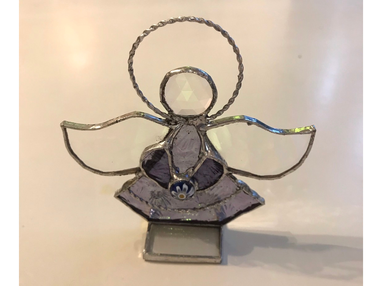 あらかじめカットいただいたガラスに、銅板を巻き、はんだで接着しました。サポートいただき、もともとの図案のかわいらしさと、ご用意いただいたガラスのカラーの美しさも相まって、こんなにかわいい作品を作ることができ、感無量です。