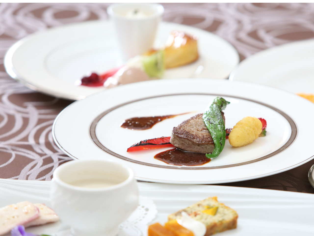 季節ごとの食材を取り入れたフレンチフルコース。メインディッシュは牛フィレ肉のソテーをご用意。乾杯のスパークリングワインと4号サイズのアニバーサリーケーキも付いたALL IN ONEなプラン。
