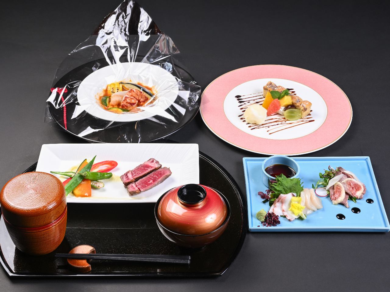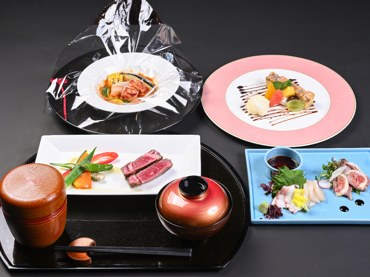贅沢なダブルメイン、オマール海老と黒毛和牛ロース肉取り入れた和とフレンチのマリアージュ!
