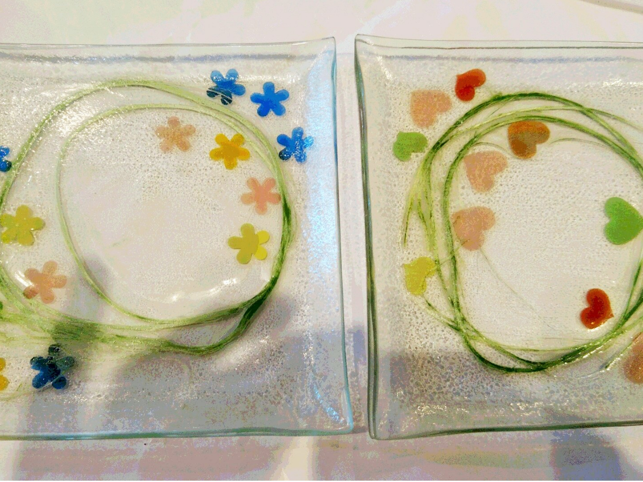 ガラスのお皿&箸置き作り♪(12p角の皿2枚・箸置き2個)