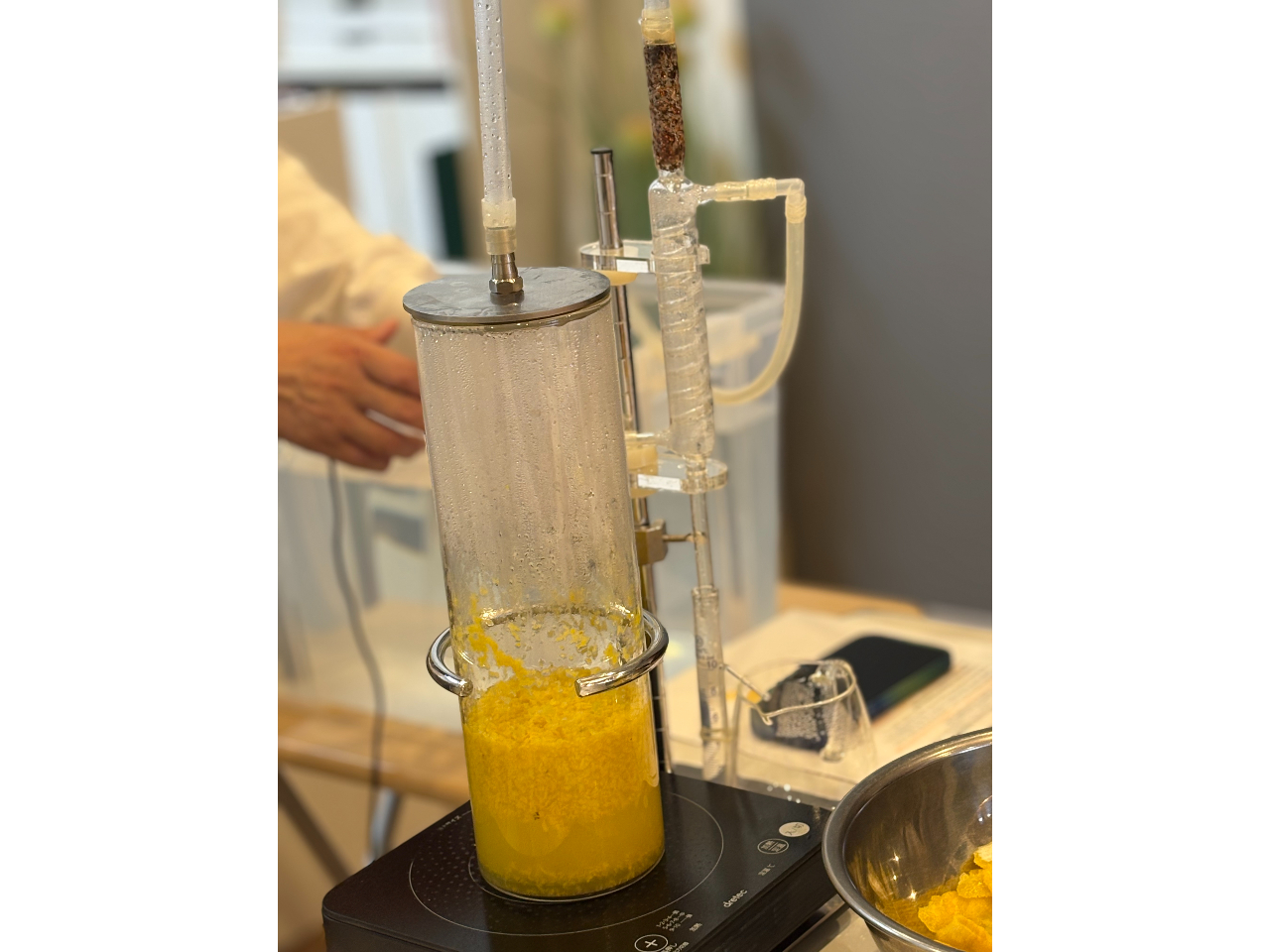 帆南(はんな)では、ゆずを使った「香りを作る」蒸留レッスンができます。ゆず精油とゆずの種、ゆのすをお持ち帰り頂けます。