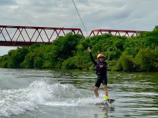 【ウェイクボード_未経験者体験コース】長良川で颯爽と滑ろう!通信ヘルメットで直にレクチャーも♪