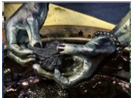◎色移りしない【なめても安心】の伝統の染料を使用。