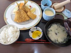 初めて伺いました。窓から見える海岸風景を堪能しました。アジフライとアジのタタキの定食を頂きましたが、アジフライはなかはサクッと、外はカリでおいしかったです。タタキも新鮮で触感がプリっと最高でした。