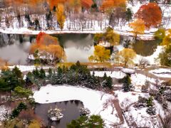 ホテル24階 日本料理「和乃八窓庵」から眺める、秋の中島公園