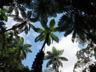 奄美大島の住用町にあるマングローブ原生林と近くの森と滝、