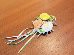 *リボンでバラを作って小さめのコサージュを完成させましょう!