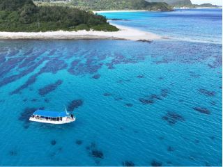 トイレ、簡易シャワー付き全面テント張りのグラスボートでゆったりと。写真や動画撮影はもちろん、天候次第ではドローン撮影もあります。その日のコンディションやお客様のご要望を聞きながらポイントを選びます。