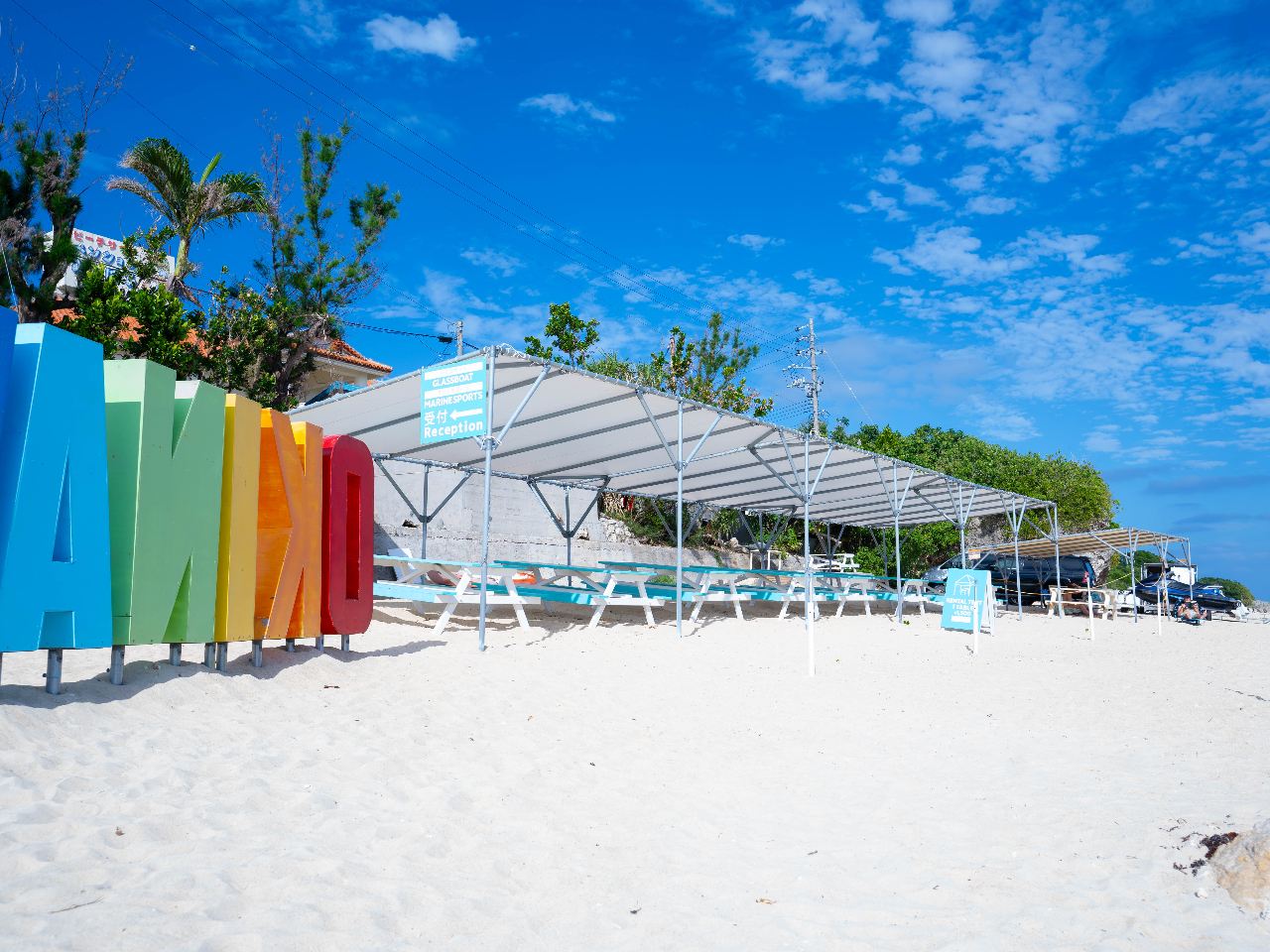 • 新原ビーチのシンボルOKINAWAが皆様をお出迎えします☆