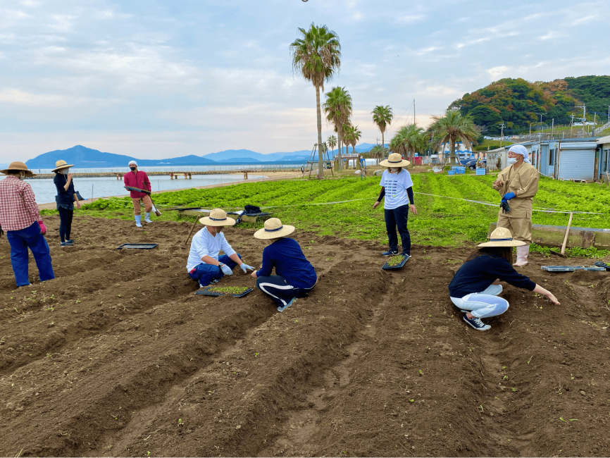 農薬や化学肥料を使わずに、循環型で推肥をつくり、土を健全に保つ農業に取り組む「北崎未来を創る会」のメンバーと一緒に、畑で獲れた野菜を美味しく食べましょう。