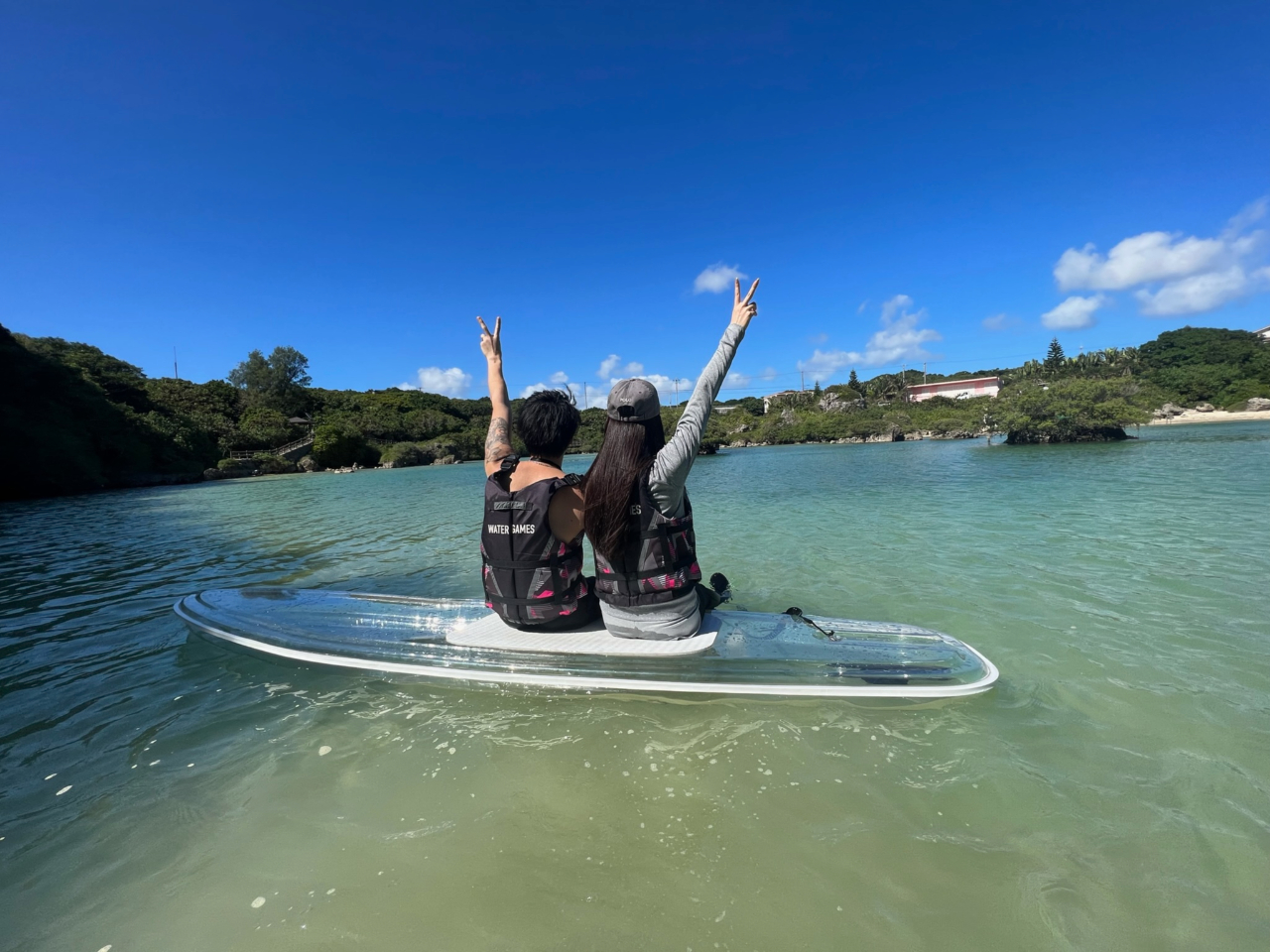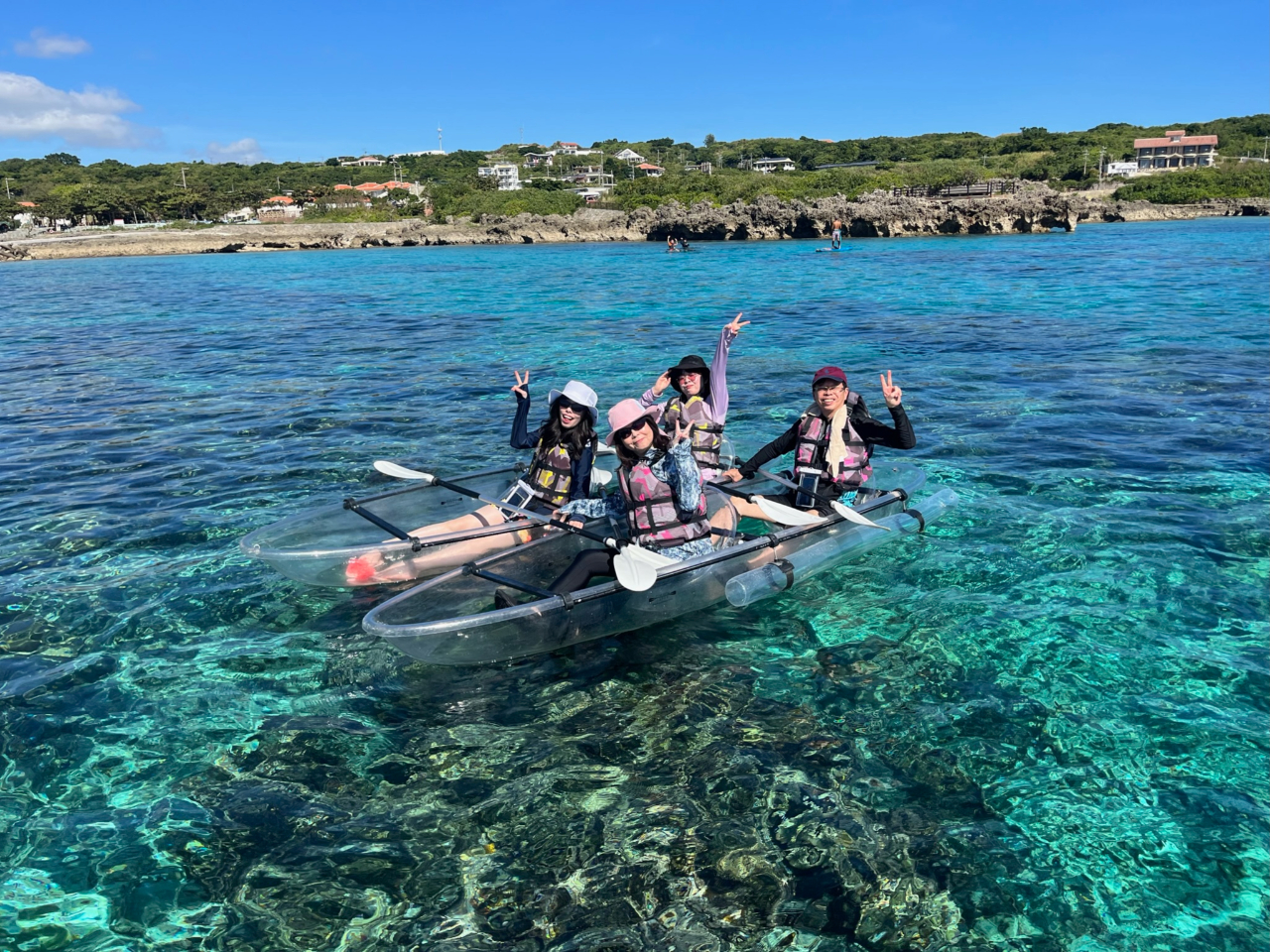 弊社のクリアカヤック・クリアSUPは一般的なものとは違い、カヤック・SUP自体が透明だから、海面を浮かびながら海の中が楽しめちゃいます♪