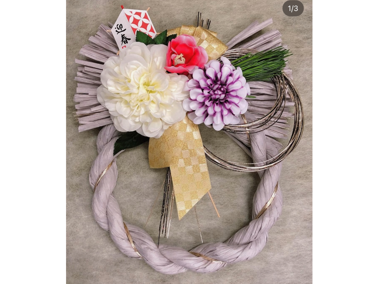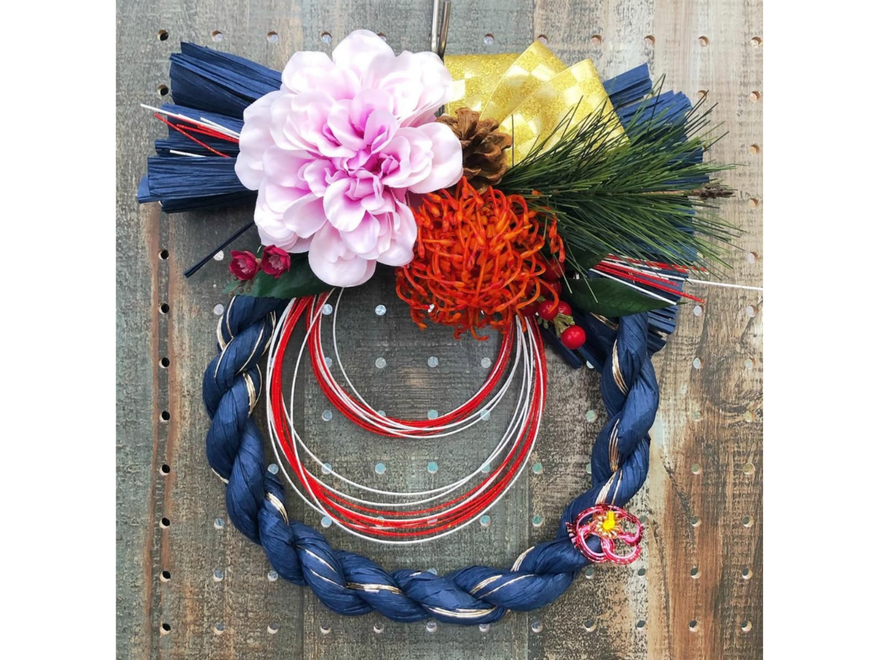 カラフルなしめ縄にアーティフィシャルフラワーや水引きをアレンジメント♪