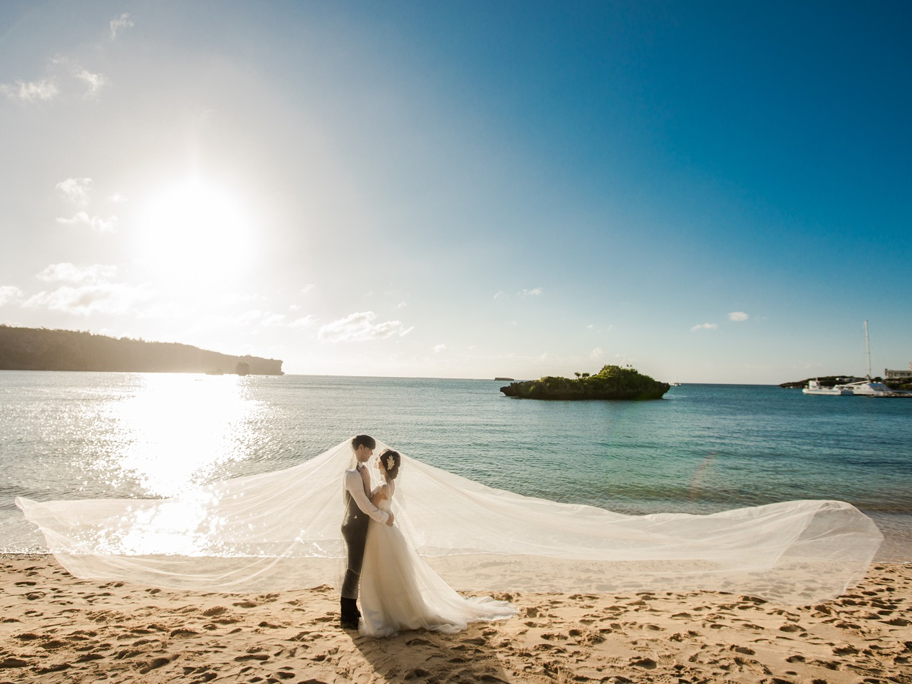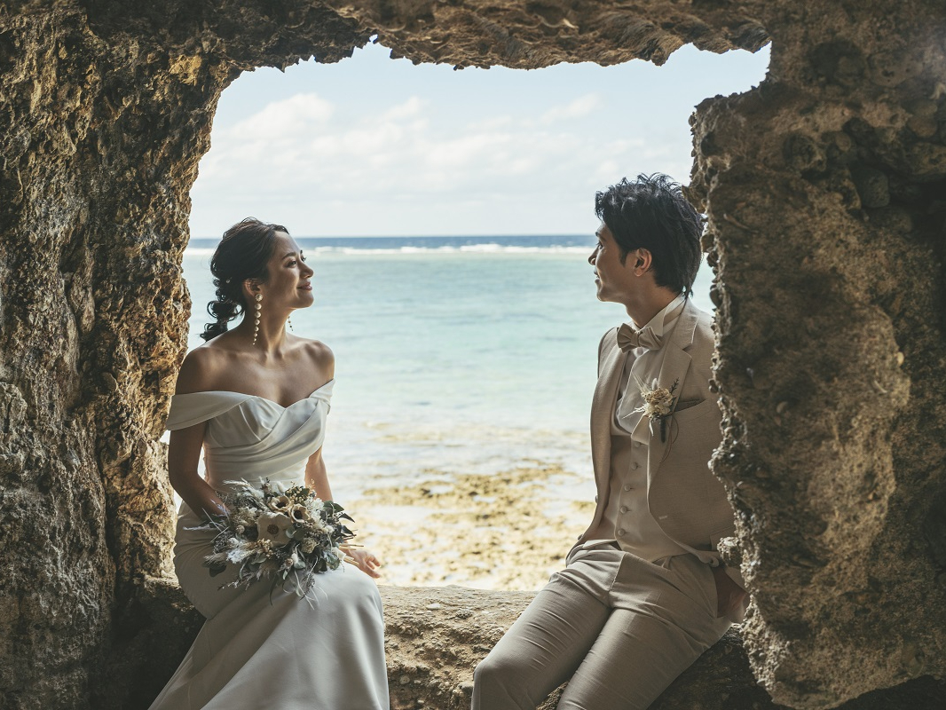 一度見たら忘れられない青い海と砂浜!沖縄に来たら絶対撮りたい!“非日常の美しさ”に溶け込むおふたりを撮影します。プロのヘアメイク・カメラマン・アテンドもすべてコミコミの安心プランでお任せください!