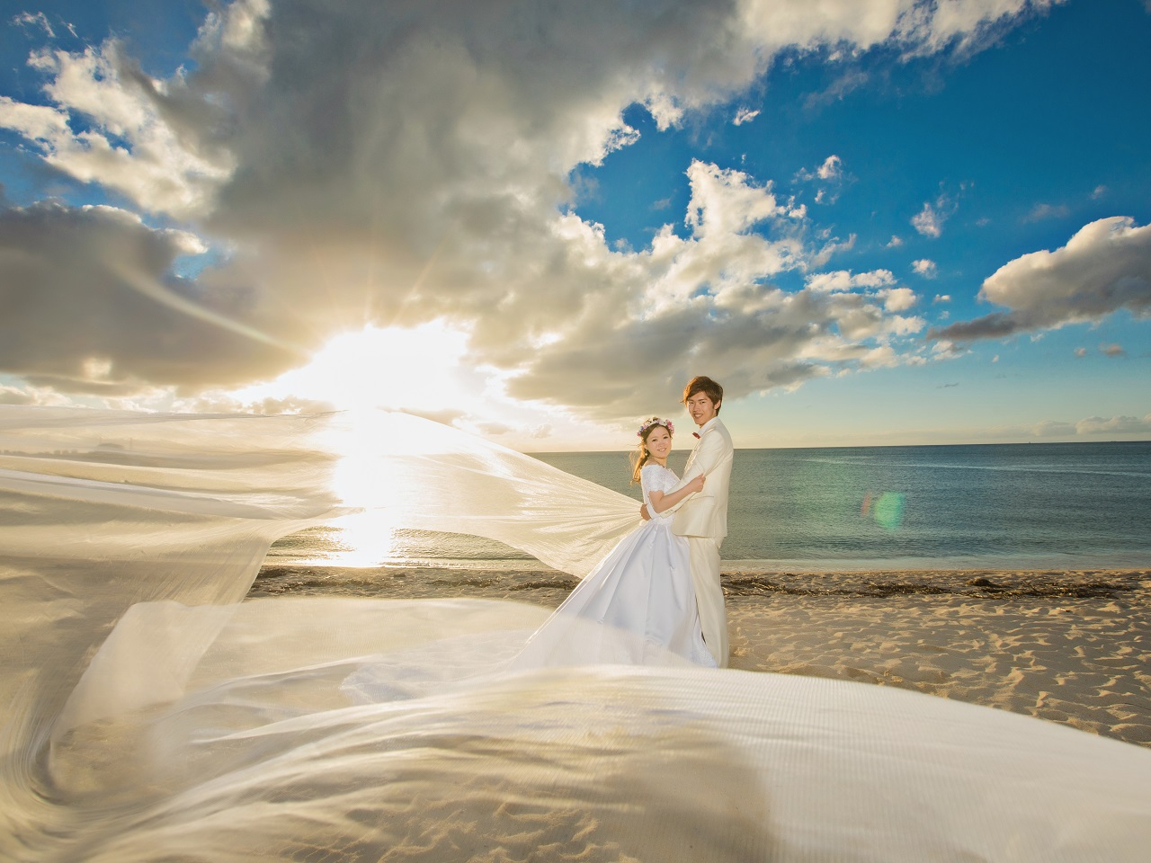 【旅フォト】沖縄本島◆ドレス2着付◆ ビーチフォトプラン・撮影データ50カット
