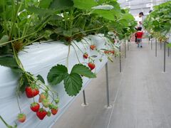 友達に誘われて、初めて行きました。 枚方の自宅からそんなに時間もかからず、車で20分くらいで到着。 駐車場は、砂利ですが、まあまあスペースもあり、停めれました。ハウスの中は通路の幅もゆとりがあり、左右のいちごを選んで取りながらゆったりと進めました。高さがある苗床から横にぶら下がった形なので、いちごに土とかは付いておらず、洗わなくても全然大丈夫な感じでした。3種類のいちごのどれもが美味しくて、粒も大きいのが沢山あり、30分くらいでお腹いっぱいになりました。ハウスの中はとても暖かく、外気温19℃くらいの日でしたが、汗をかくほどでした。 洋式の簡易トイレや、通路に手洗い場もあったので、快適でした。