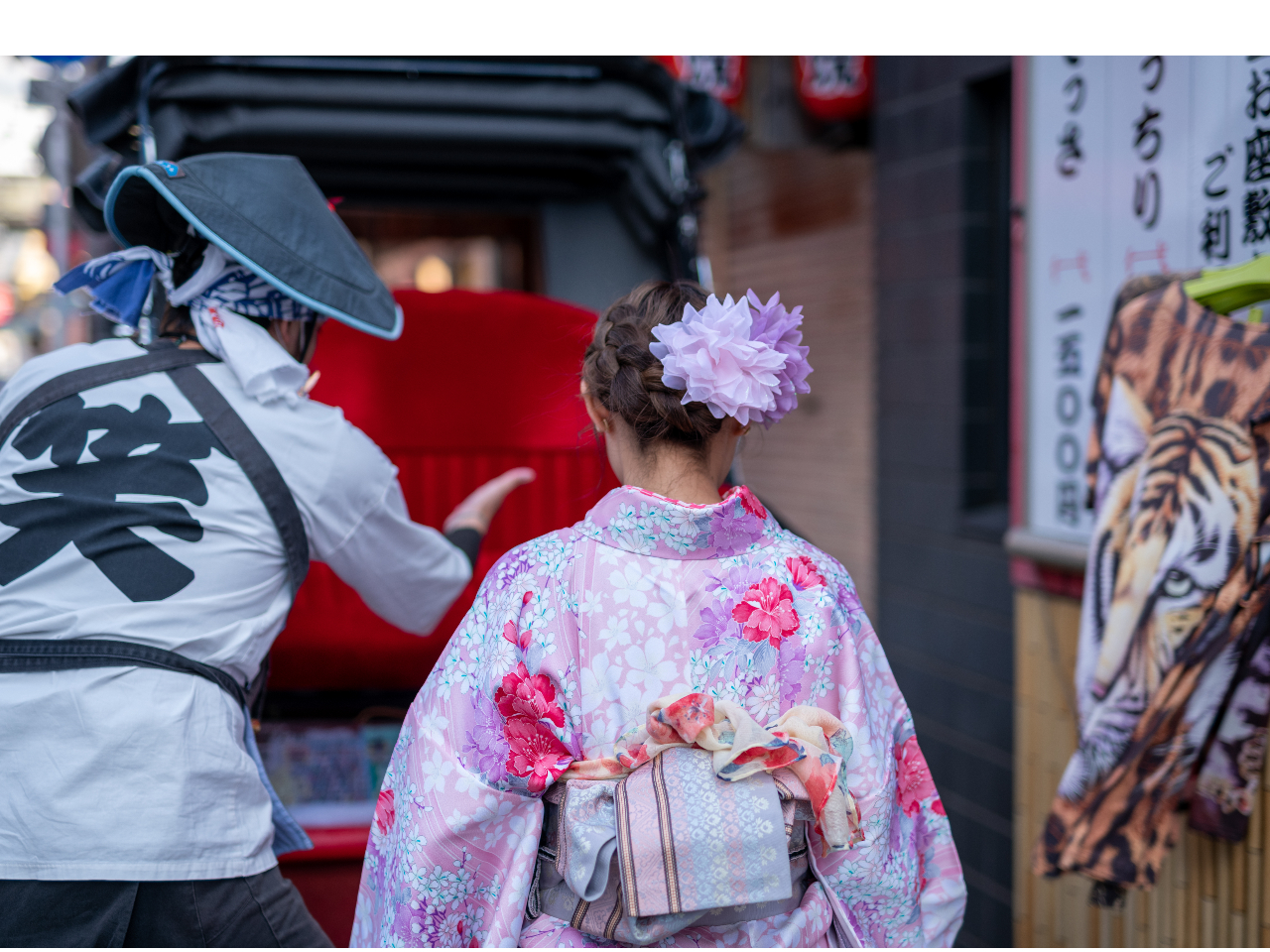 近年、海外のお客様や観光のお客様に人気のエリア、大阪新世界で、着物体験。写真撮影、つまみ細工、人力車体験などで、魅力再発見しませんか。