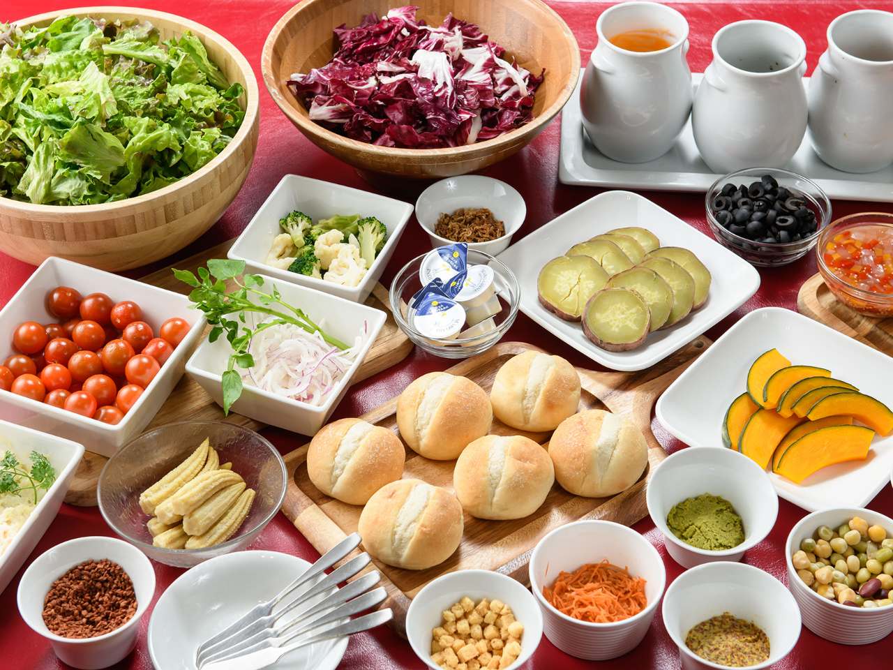 フォトジェニックなシュラスコはSNS映え。女子会にもおすすめ!充実のビュッフェラインブラジルの家庭料理やサラダ・デザートバー等、約30種の料理も食べ放題!