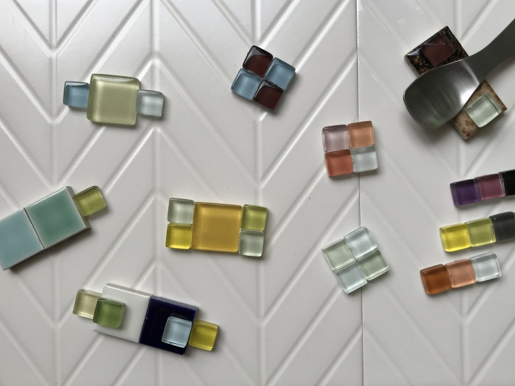 陶磁器質とガラス質の色々なタイルの中からお好みのタイルを選んで、箸置きやヘヤーアクセサリーやマグネットを作って頂けます。