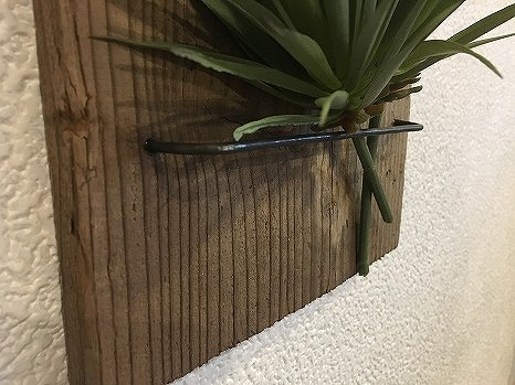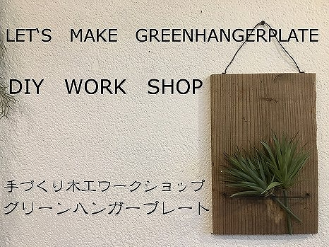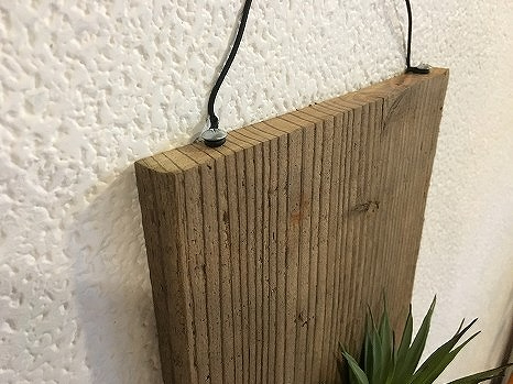 足場板にハリガネを取り付けしていただきグリーンプレートを作っていただきます。壁掛けタイプになりますので置き場所に困らないことが最大の魅力。狭いトイレやキッチンなど好きな場所に手軽に飾ることができます。
