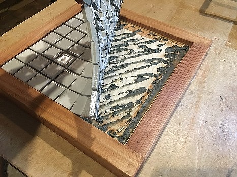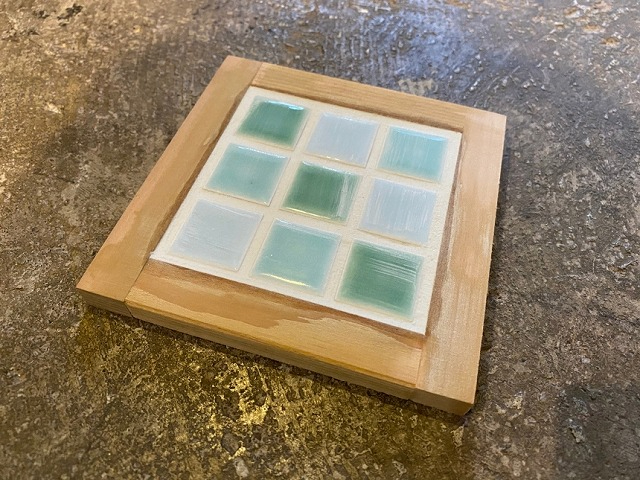 木製枠にタイルをはめ込んだ実用的で食卓のアクセントになるオシャレなポットスタンド(鍋敷き)。