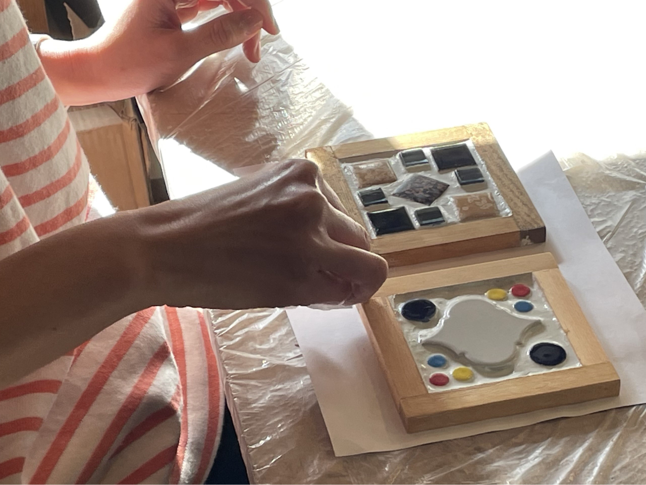 端材、モザイクタイルをつかって色々な雑貨をつくっていただきます!