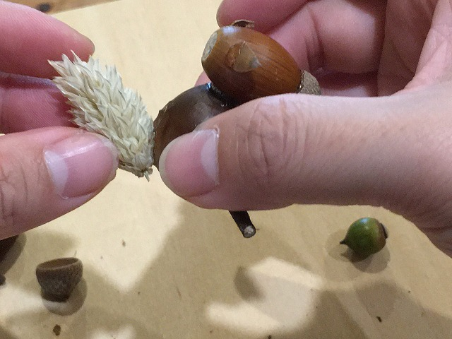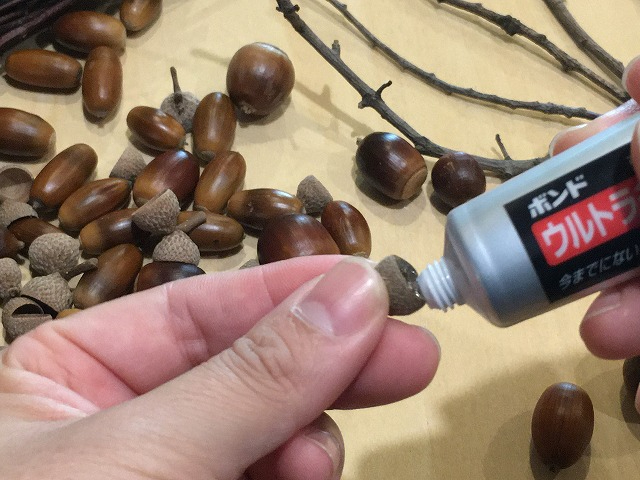 どんぐりと枝を使って、自由に工作してみましょう♪